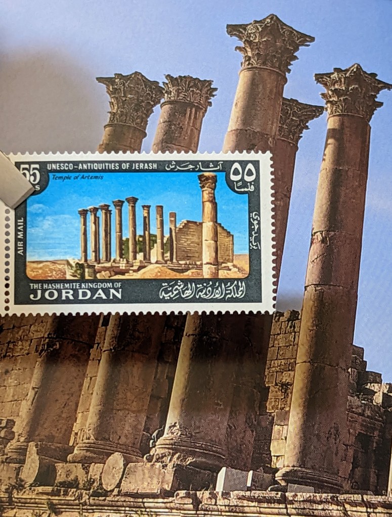 Jerash Antiquities, Temple of Artemis (Diana). Issued by the Hashemite Kingdom of Jordan in 1965. SG 673.